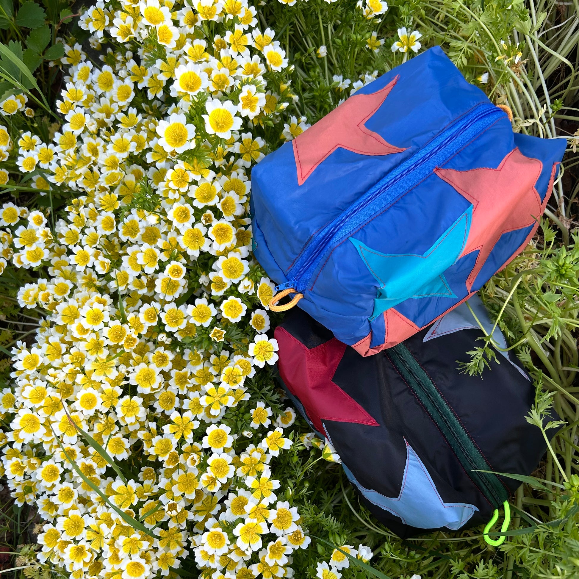Quilted washbag created using recycled tents. Suitable for a variety of uses!