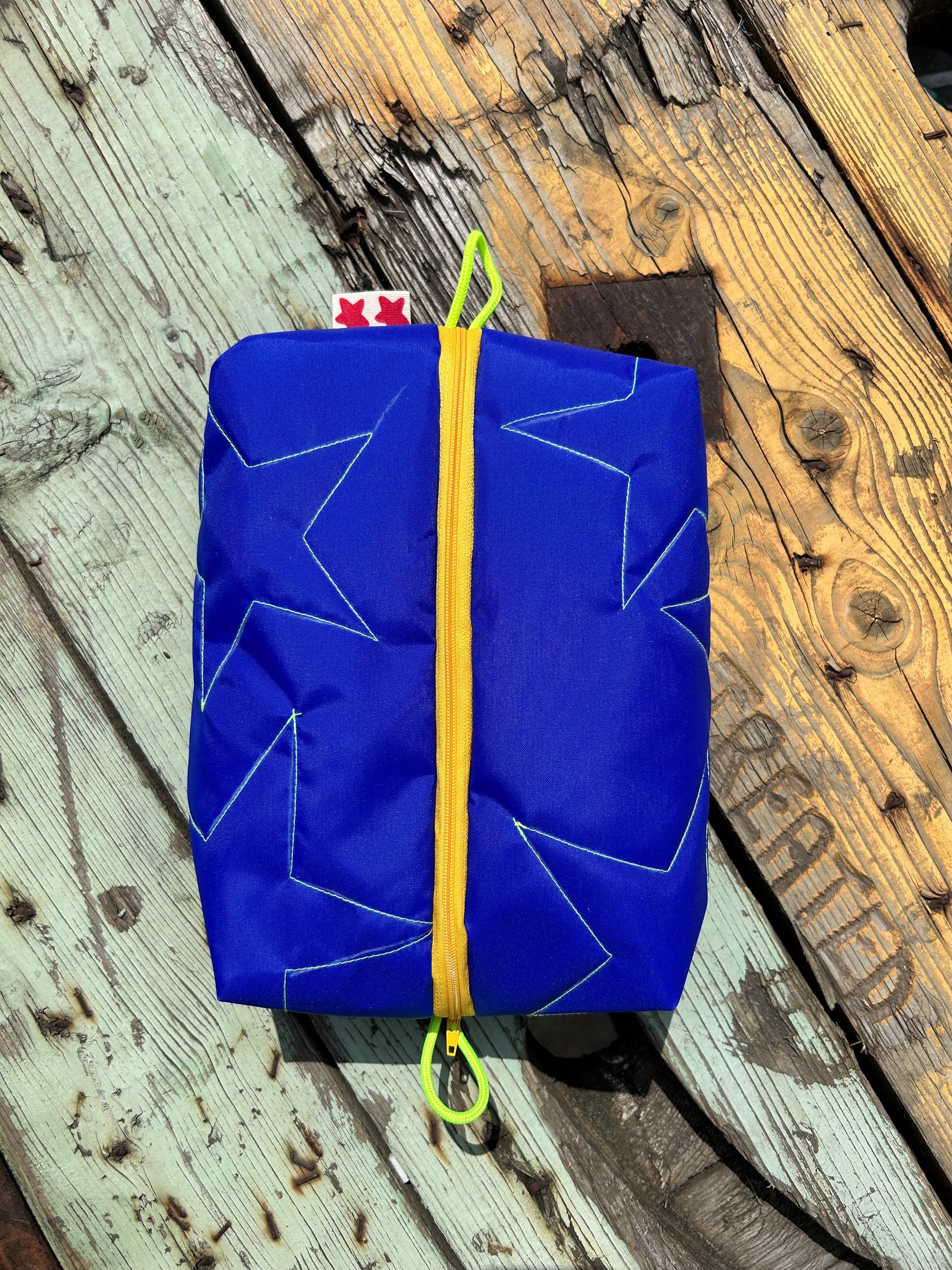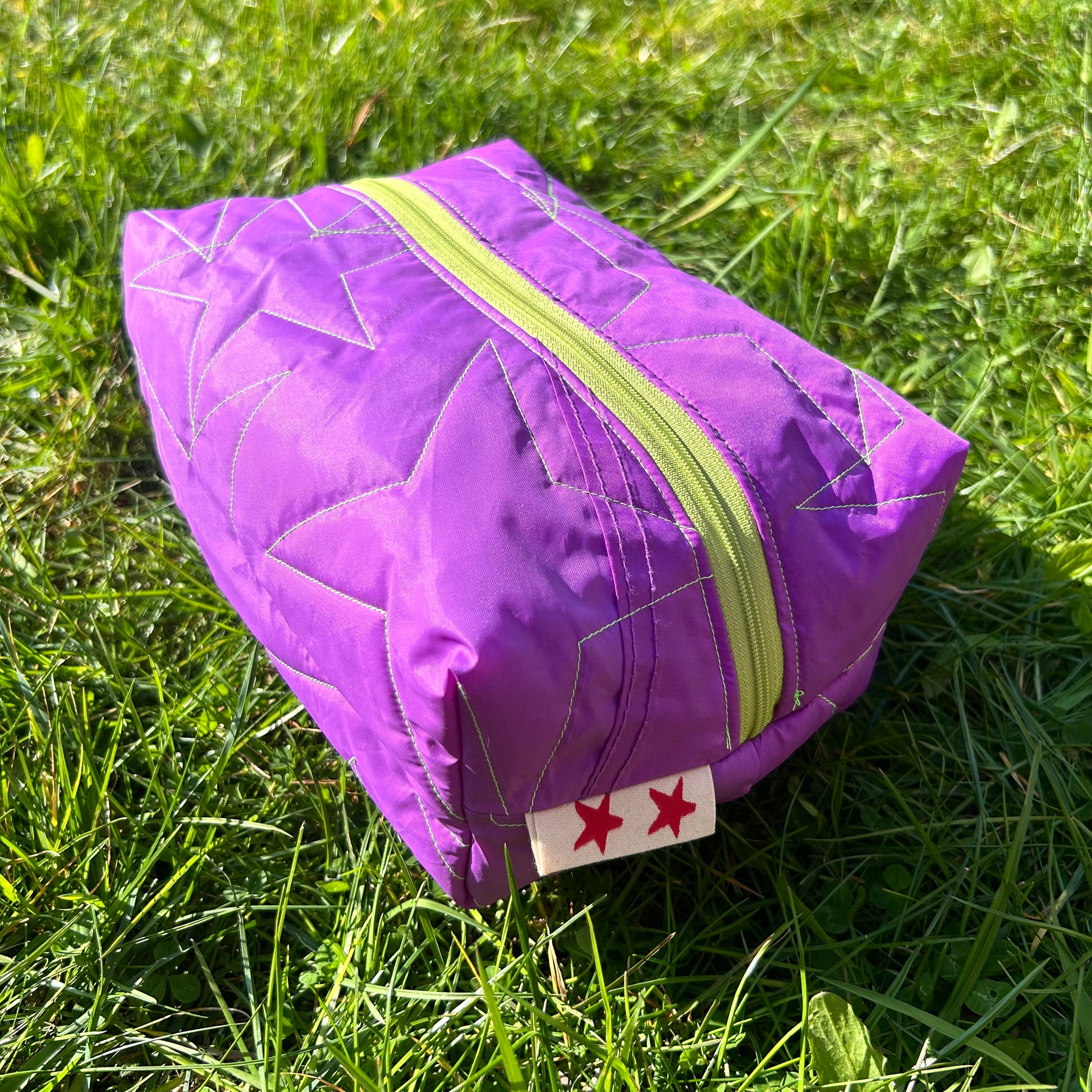 Quilted washbag created using recycled tents. Suitable for a variety of uses!